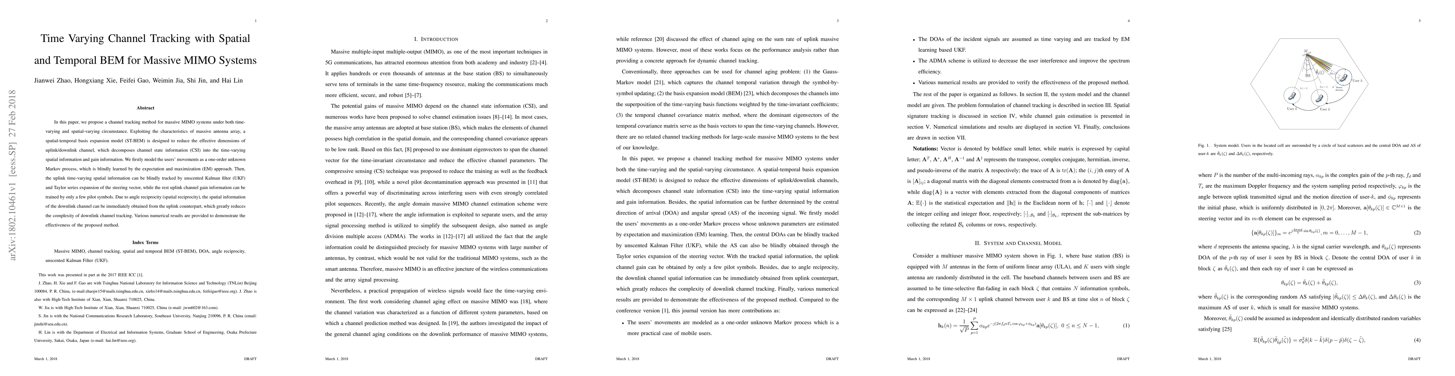This paper proposes a spatial-temporal basis expansion model for tracking time-varying channels in massive MIMO systems, utilizing a one-order Markov process to model user movements and employing Taylor series expansion for up-link spatial information tracking. The down-link channel tracking benefits from angle reciprocity, significantly reducing complexity.