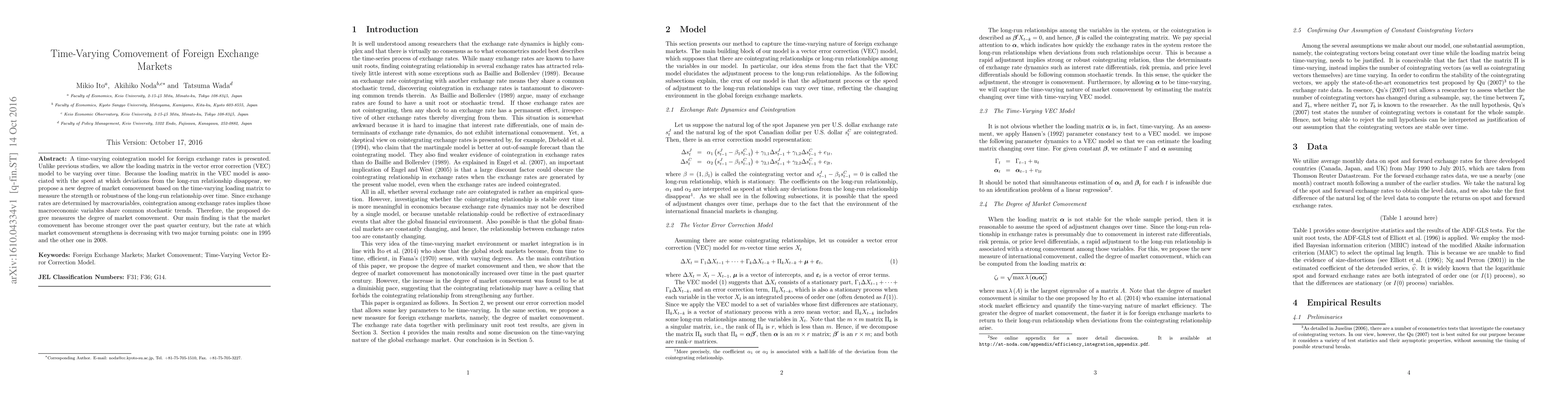 A time-varying cointegration model for foreign exchange rates is presented. Unlike previous studies, we allow the loading matrix in the vector error correction (VEC) model to be varying over time. Because the loading matrix in the VEC model is associated with the speed at which deviations from the long-run relationship disappear, we propose a new degree of market comovement\ based on the time-varying loading matrix to measure the strength or robustness of the long-run relationship over time. Since exchange rates are determined by macrovariables, cointegration among exchange rates implies those macroeconomic variables share common stochastic trends. Therefore, the proposed degree measures the degree of market comovement. Our main finding is that the market comovement has become stronger over the past quarter century, but the rate at which market comovement strengthens is decreasing with two major turning points: one in 1995 and the other one in 2008.