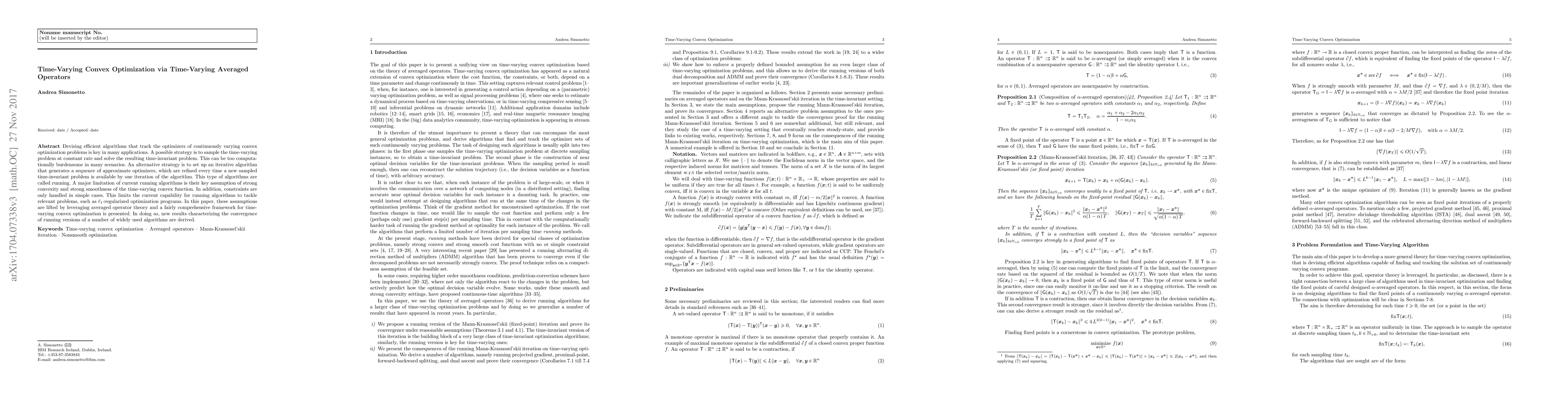Devising efficient algorithms that track the optimizers of continuously varying convex optimization problems is key in many applications. A possible strategy is to sample the time-varying problem at constant rate and solve the resulting time-invariant problem. This can be too computationally burdensome in many scenarios. An alternative strategy is to set up an iterative algorithm that generates a sequence of approximate optimizers, which are refined every time a new sampled time-invariant problem is available by one iteration of the algorithm. These types of algorithms are called running. A major limitation of current running algorithms is their key assumption of strong convexity and strong smoothness of the time-varying convex function. In addition, constraints are only handled in simple cases. This limits the current capability for running algorithms to tackle relevant problems, such as $\ell_1$-regularized optimization programs. In this paper, these assumptions are lifted by leveraging averaged operator theory and a fairly comprehensive framework for time-varying convex optimization is presented. In doing so, new results characterizing the convergence of running versions of a number of widely used algorithms are derived.