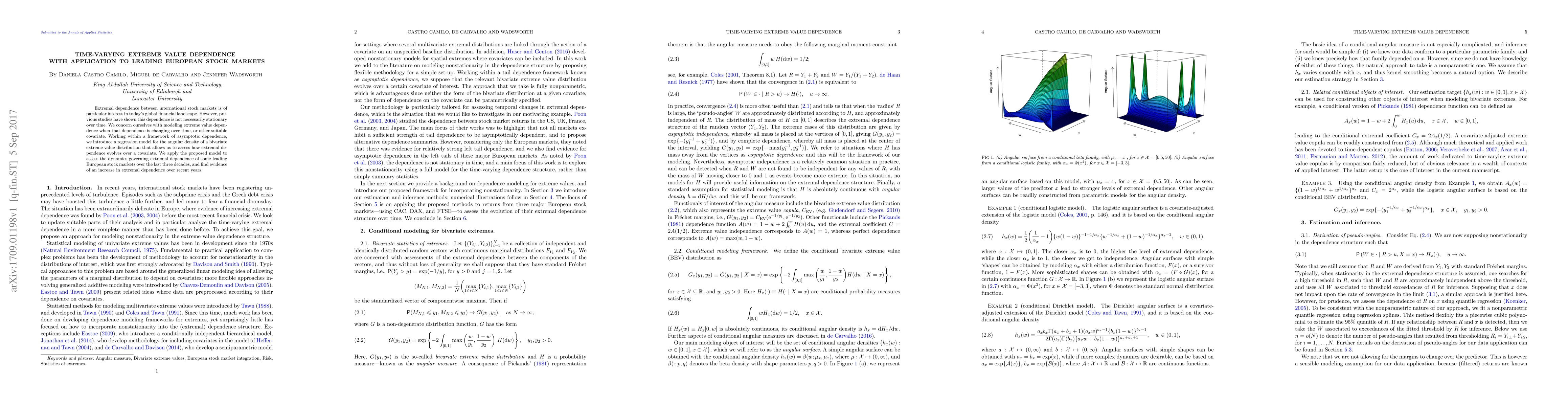 This paper develops a regression model for time-varying extreme value dependence in international stock markets, finding that extremal dependence between leading European markets has increased over recent years. The study uses a bivariate extreme value distribution framework to capture evolving dependence over time.