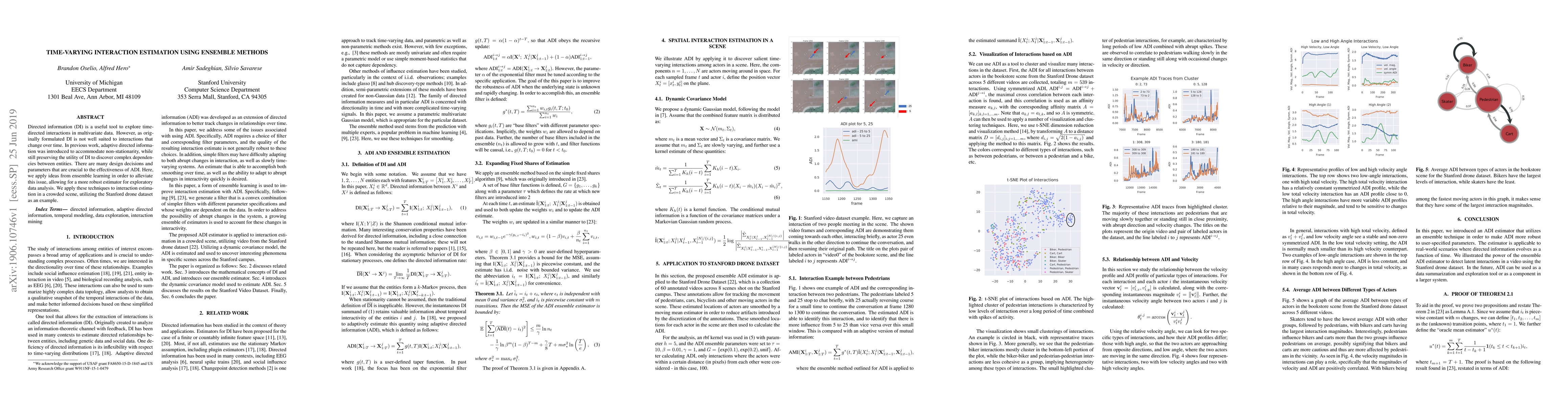 This paper proposes a method to estimate time-varying interactions using ensemble methods, improving on adaptive directed information for non-stationarity, and demonstrates its effectiveness in a crowded scene using the Stanford drone dataset.