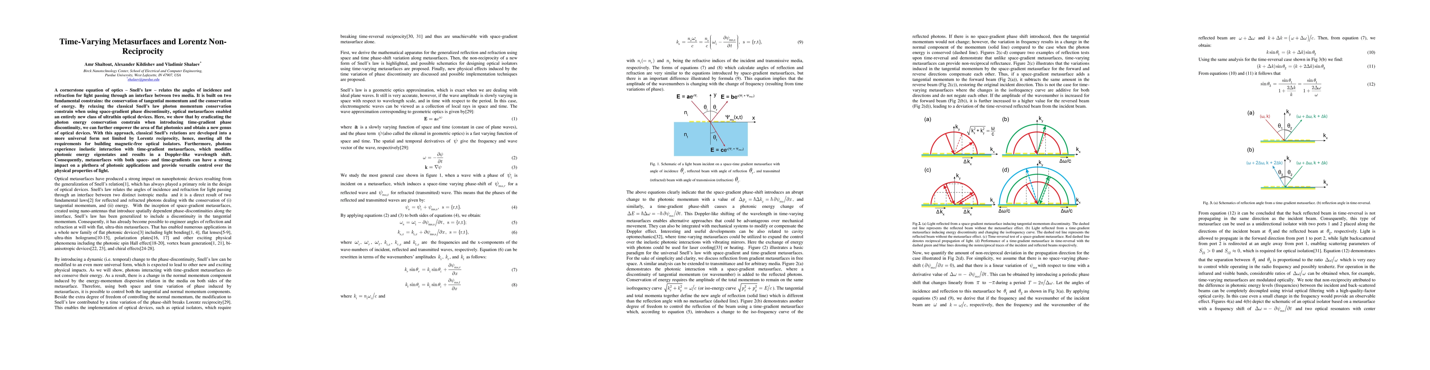 This paper explores the creation of time-varying metasurfaces that break Lorentz reciprocity by introducing time-gradient phase discontinuities, enabling magnetic-free optical isolators and inelastic photon interactions leading to wavelength shifts. These advancements offer versatile control over light properties and expand the scope of flat photonics applications.