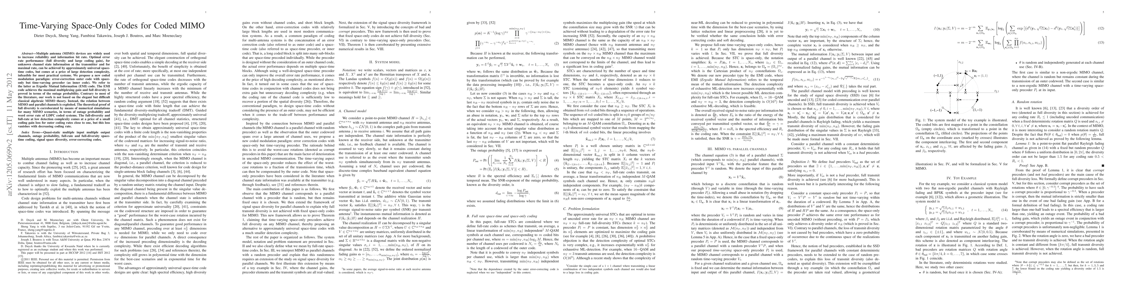 This paper proposes a new coded modulation paradigm for MIMO systems using time-varying space-only codes with an error-correction outer code. The Ergodic Mutual Information (EMI) code achieves full diversity and multiplexing gain with low detection complexity, though it incurs a small coding gain loss at high coding rates.