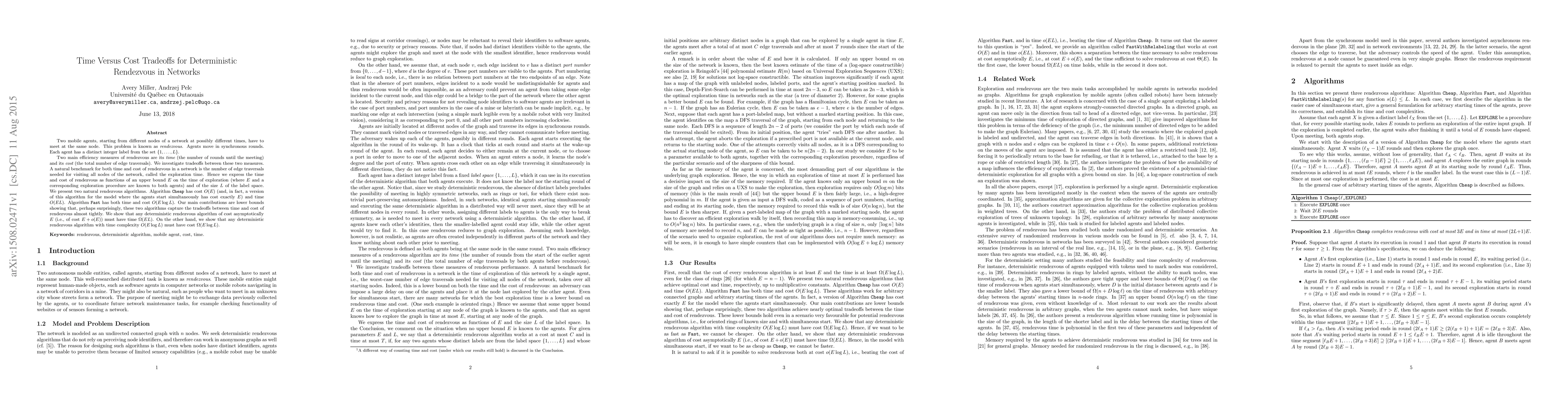This paper investigates the tradeoffs between time and cost in deterministic rendezvous problems in networks, where two agents must meet at a node. It presents two algorithms: $\mathtt{Cheap}$ with cost $O(E)$ and time $O(EL)$, and $\mathtt{Fast}$ with both time and cost $O(E\log L)$. The study establishes lower bounds showing that these algorithms nearly capture the optimal tradeoff between time and cost.