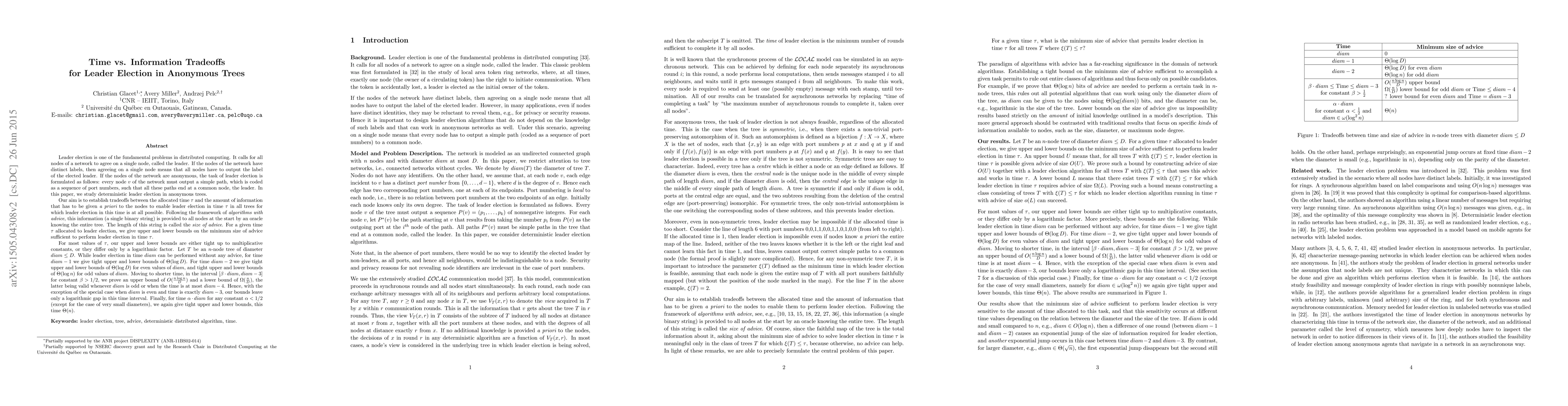 This paper investigates deterministic leader election in anonymous trees, focusing on the tradeoffs between time and pre-provided information. It establishes upper and lower bounds on the minimum advice size needed for leader election in various time intervals, revealing tight bounds for specific time reductions from the tree diameter.