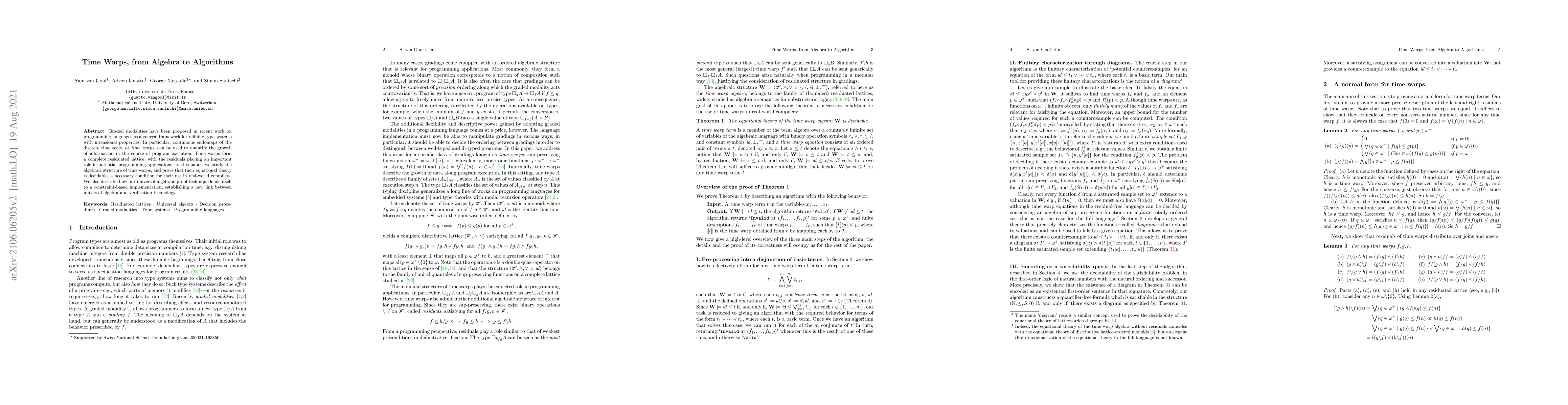 This paper studies time warps, or continuous endomaps of time, as a framework for refining type systems in programming languages. The authors prove that the equational theory of time warps is decidable, a crucial step for their potential use in real-world compilers, and demonstrate a link between universal algebra and verification technology.