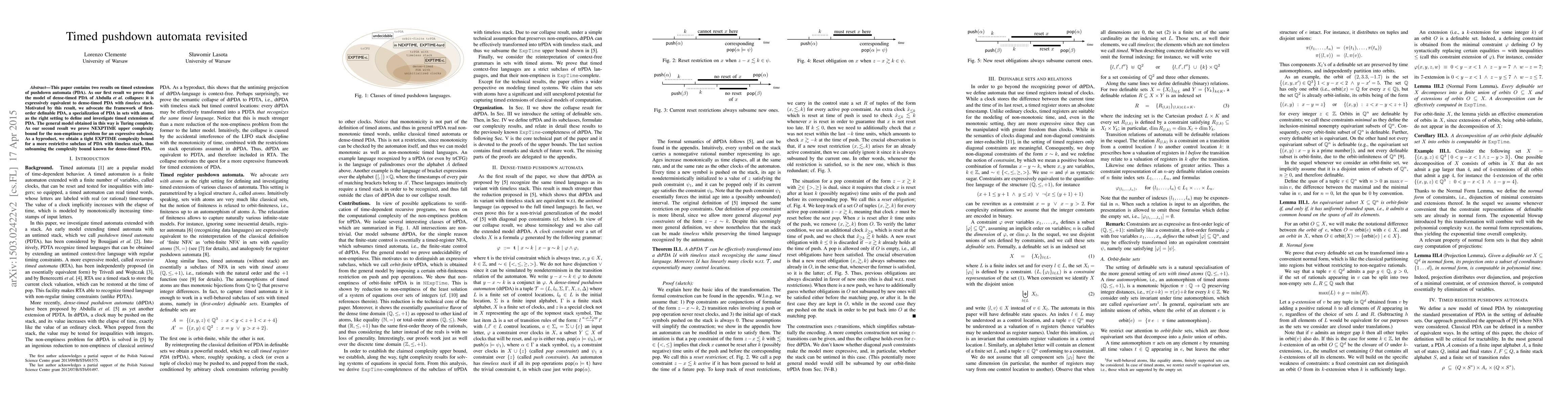 The paper presents a detailed analysis of timed pushdown automata (PDA) by extending classical definitions to incorporate time, focusing on dense-timed and orbit-finite models.