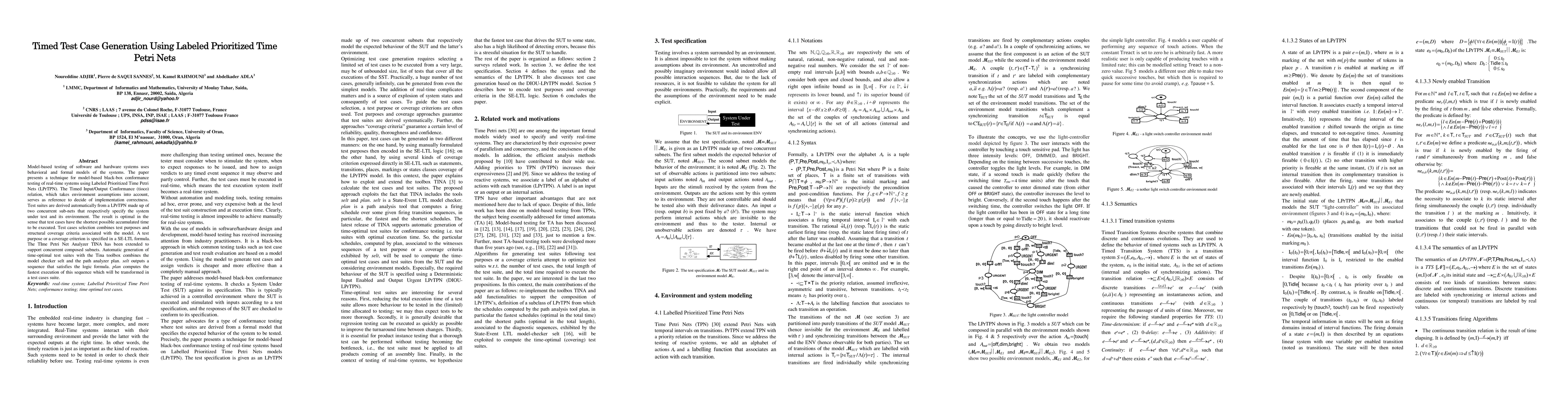 This paper introduces a method for generating time-optimal test cases using Labeled Prioritized Time Petri Nets for model-based black-box conformance testing of real-time systems. The technique leverages the tioco relation and employs the Tina toolbox to create test suites that ensure both structural coverage and minimal execution time.
