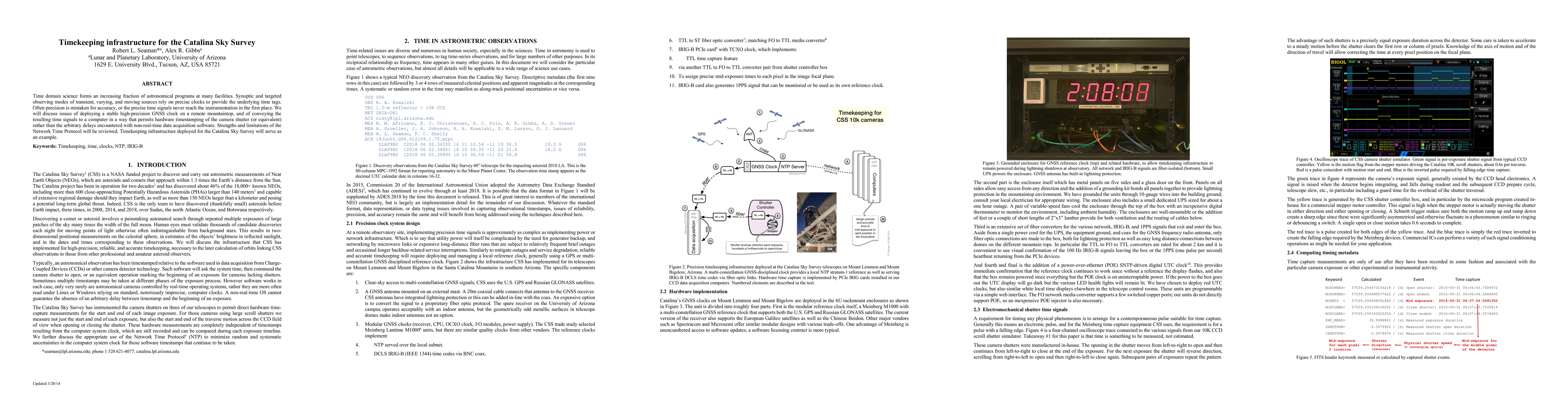 This research paper focuses on developing precise timekeeping infrastructure for astronomical surveys, addressing issues with deploying stable clocks and conveying accurate timing to equipment.