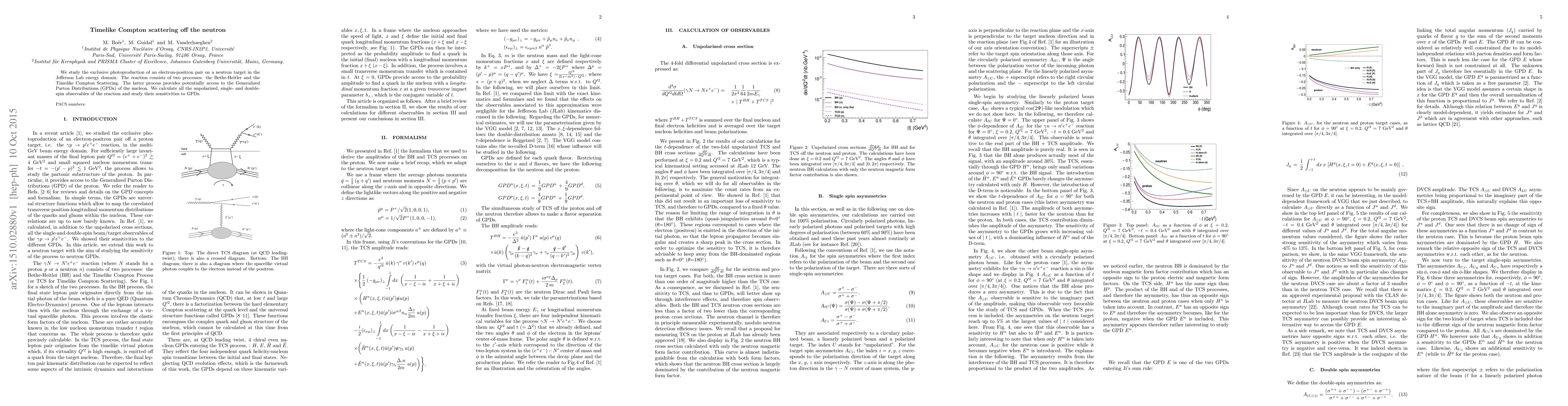 This study investigates Timelike Compton scattering off a neutron target to access Generalized Parton Distributions of the nucleon, calculating key observables for reaction sensitivity analysis.