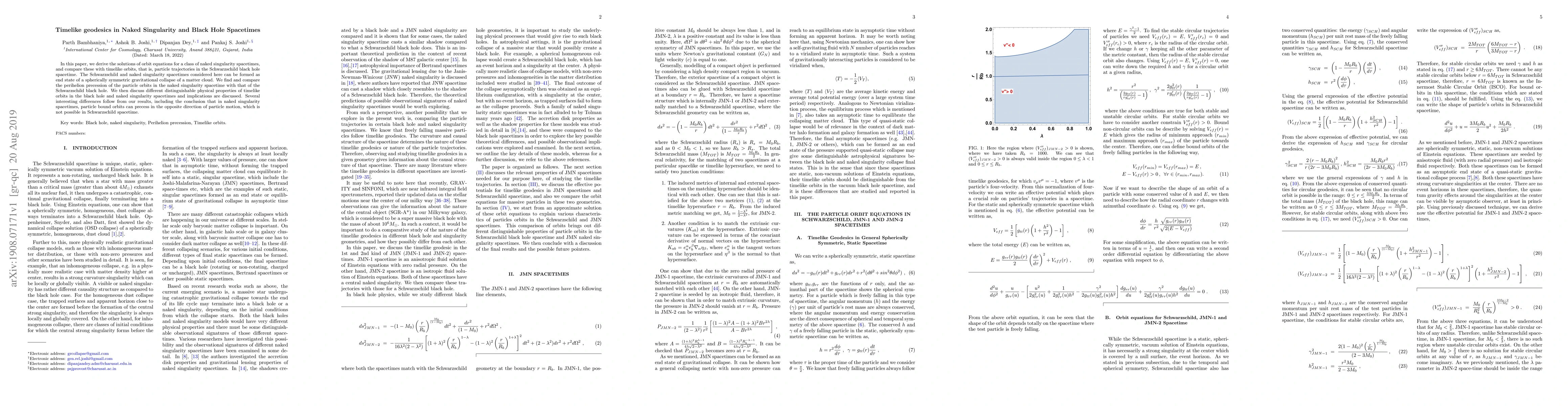 In this paper, we derive the solutions of orbit equations for a class of naked singularity spacetimes, and compare these with timelike orbits, that is, particle trajectories in the Schwarzschild black hole spacetime. The Schwarzschild and naked singularity spacetimes considered here can be formed as end state of a spherically symmetric gravitational collapse of a matter cloud. We find and compare the perihelion precession of the particle orbits in the naked singularity spacetime with that of the Schwarzschild black hole. We then discuss different distinguishable physical properties of timelike orbits in the black hole and naked singularity spacetimes and implications are discussed. Several interesting differences follow from our results, including the conclusion that in naked singularity spacetimes, particle bound orbits can precess in the opposite direction of particle motion, which is not possible in Schwarzschild spacetime.