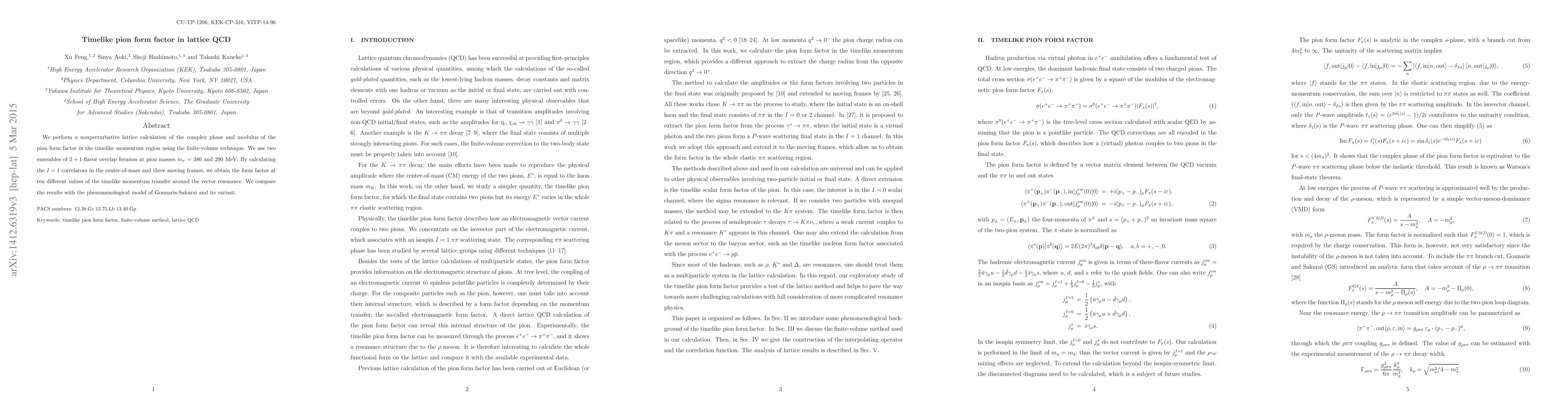 We perform a nonperturbative lattice calculation of the complex phase and modulus of the pion form factor in the timelike momentum region using the finite-volume technique. We use two ensembles of 2+1-flavor overlap fermion at pion masses m_pi = 380 and 290 MeV. By calculating the I = 1 correlators in the center-of-mass and three moving frames, we obtain the form factor at ten different values of the timelike momentum transfer around the vector resonance. We compare the results with the phenomenological model of Gounaris-Sakurai and its variant.