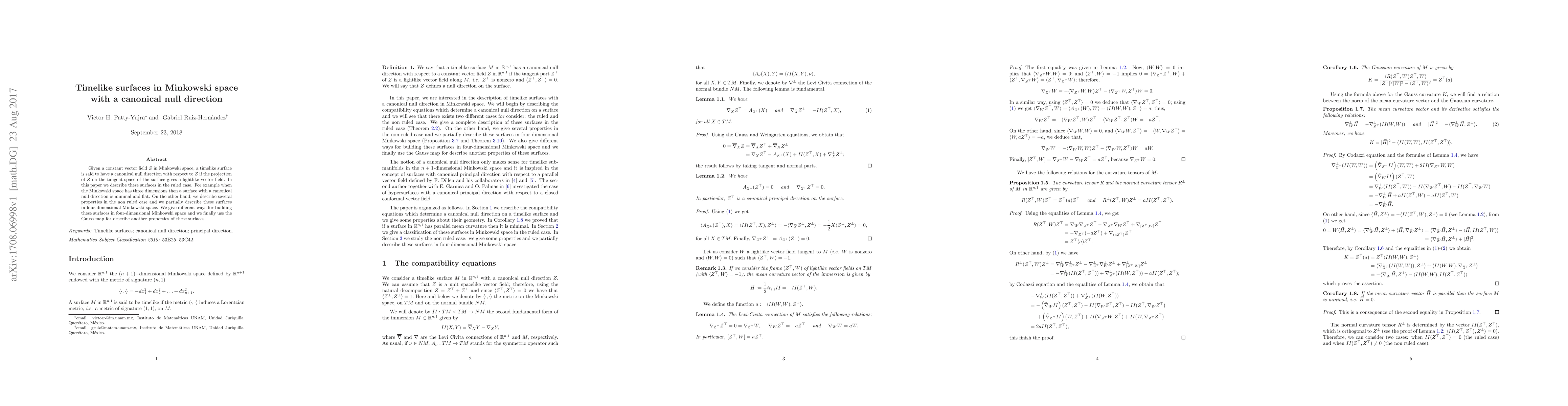 Researchers describe timelike surfaces in Minkowski space with a canonical null direction, exploring properties and constructing methods for four-dimensional spaces.