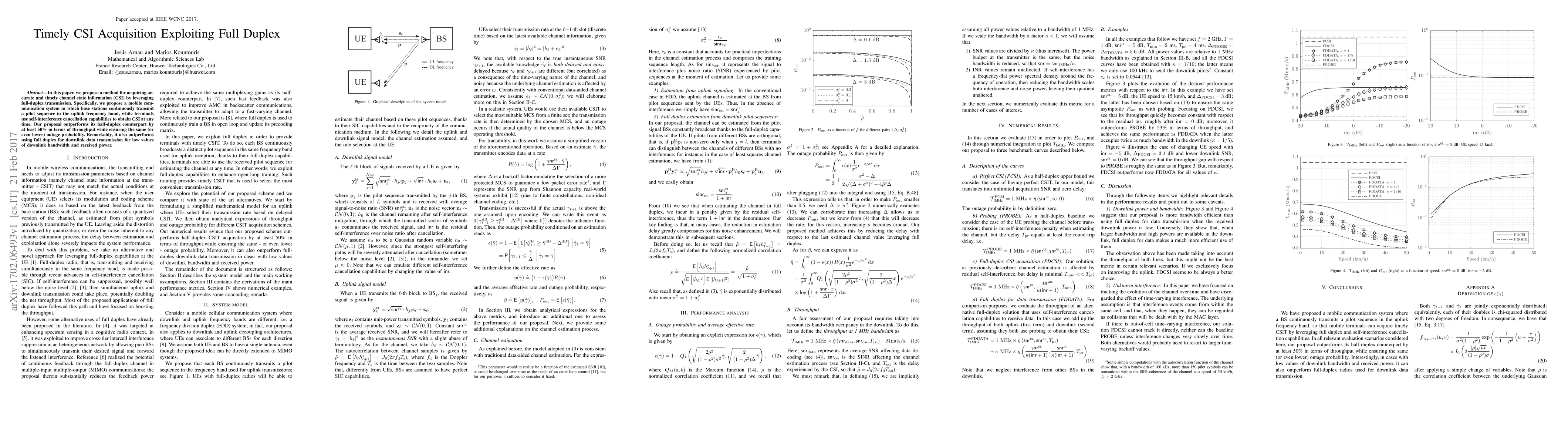 This paper proposes a method for acquiring timely and accurate channel state information (CSI) using full-duplex transmission, outperforming half-duplex systems by at least 50% in throughput while maintaining similar or lower outage probability.