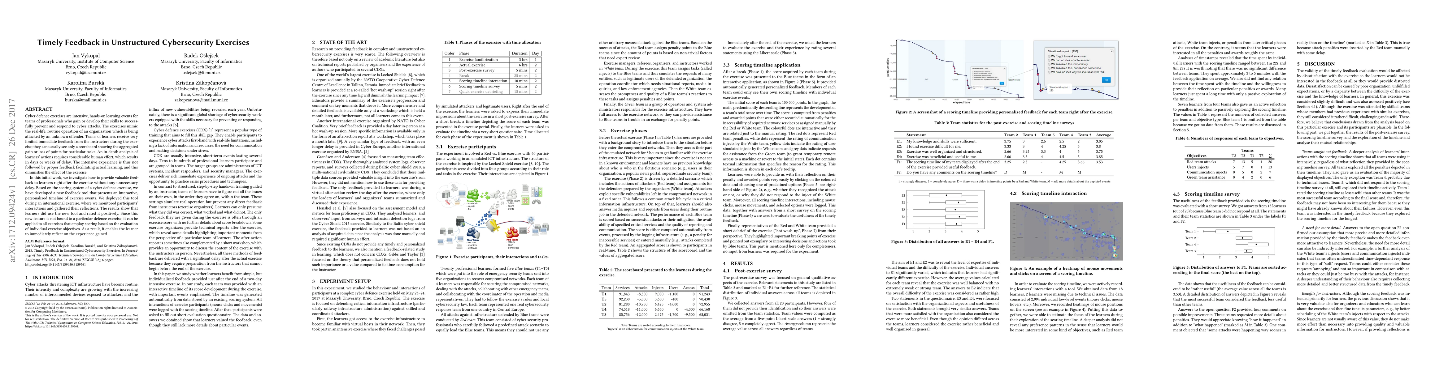 This paper explores the development of a new feedback tool for cybersecurity exercises that provides timely, interactive, and personalized timelines of exercise events. The tool was positively received by participants and can enhance learning by allowing immediate reflection on performance.