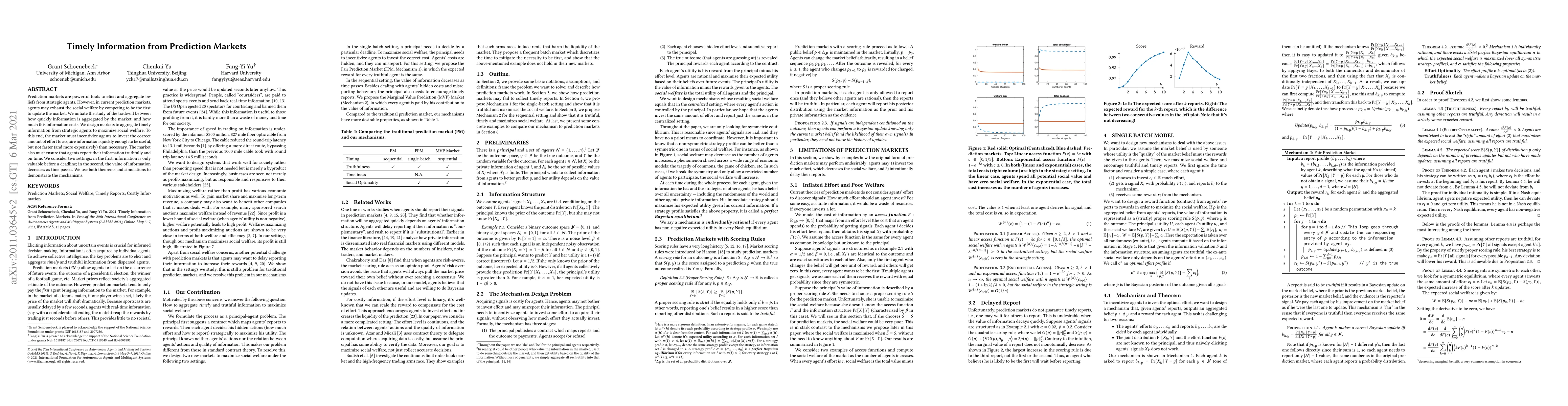 This paper explores how prediction markets can efficiently aggregate timely information from strategic agents while maximizing social welfare. It investigates the trade-off between information speed and cost, proposing mechanisms to incentivize agents to invest the right amount of effort, ensuring truthful and timely reporting, and demonstrating these through theorems and simulations in two distinct settings.