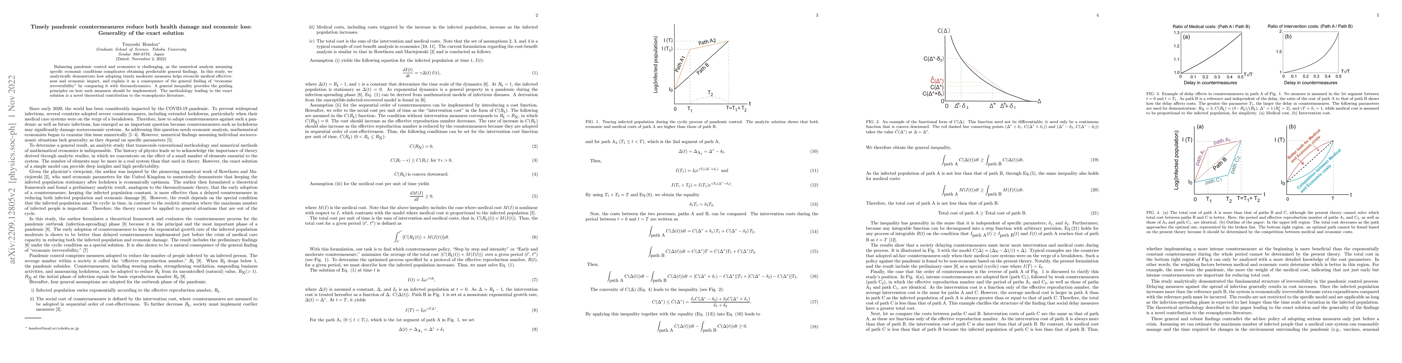 This study analytically shows that timely moderate pandemic countermeasures effectively balance health and economic outcomes, guided by a general inequality derived from the principle of "economic irreversibility." The novel theoretical approach provides a new contribution to the econophysics literature.