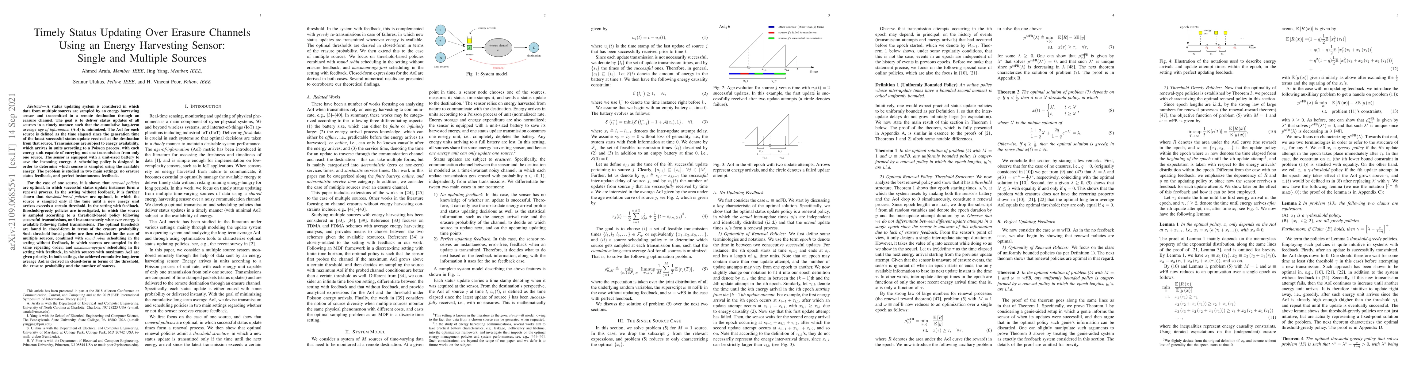 This paper investigates a status updating system for multiple sources using an energy harvesting sensor, aiming to minimize the cumulative long-term average age-of-information (AoI) over an erasure channel. The sensor schedules transmissions based on available energy, considering two feedback scenarios: no feedback and perfect instantaneous feedback.