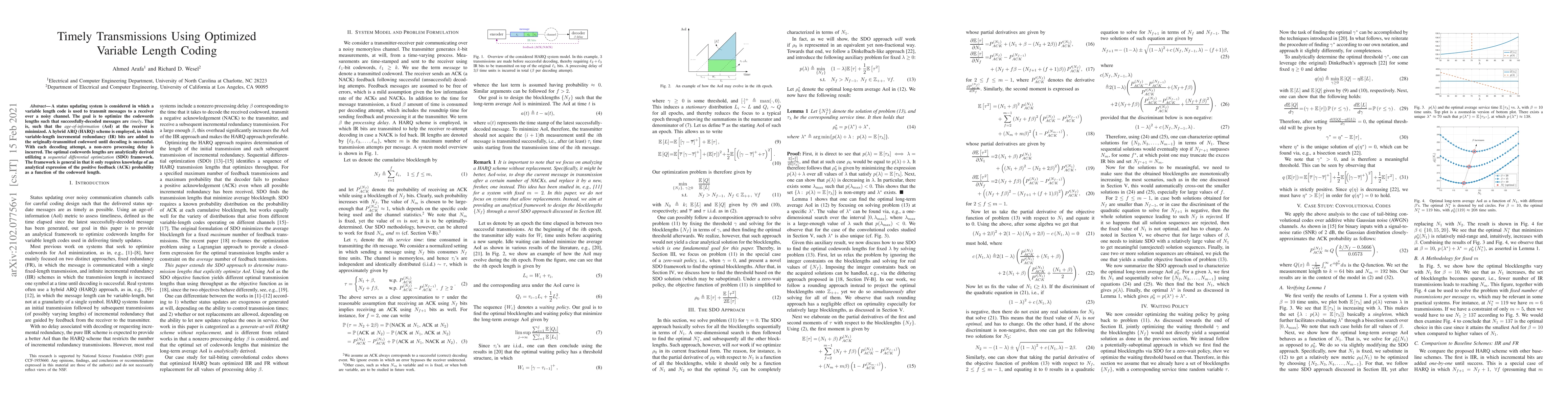 A status updating system is considered in which a variable length code is used to transmit messages to a receiver over a noisy channel. The goal is to optimize the codewords lengths such that successfully-decoded messages are timely. That is, such that the age-of-information (AoI) at the receiver is minimized. A hybrid ARQ (HARQ) scheme is employed, in which variable-length incremental redundancy (IR) bits are added to the originally-transmitted codeword until decoding is successful. With each decoding attempt, a non-zero processing delay is incurred. The optimal codewords lengths are analytically derived utilizing a sequential differential optimization (SDO) framework. The framework is general in that it only requires knowledge of an analytical expression of the positive feedback (ACK) probability as a function of the codeword length.