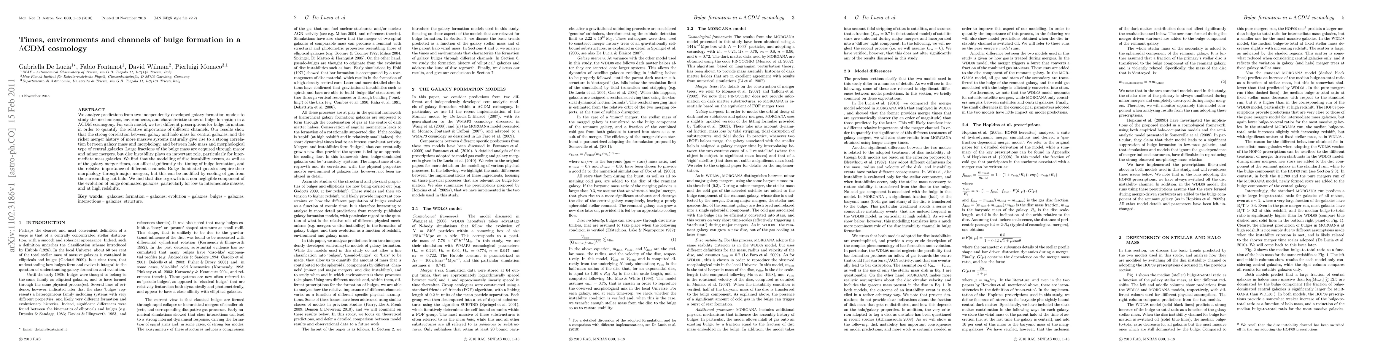We analyze predictions from two independently developed galaxy formation models to study the mechanisms, environments, and characteristic times of bulge formation in a LambdaCDM cosmogony. For each model, we test different prescriptions for bulge formation in order to quantify the relative importance of different channels. Our results show that the strong correlation between galaxy and halo mass for central galaxies, and the richer merger history of more massive systems naturally give rise to a strong correlation between galaxy mass and morphology, and between halo mass and morphological type of central galaxies. Large fractions of the bulge mass are acquired through major and minor mergers, but disc instability plays an important role, particularly for intermediate mass galaxies. We find that the modelling of disc instability events, as well as of the galaxy merger times, can affect significantly the timing of bulge formation, and the relative importance of different channels. Bulge dominated galaxies acquire their morphology through major mergers, but this can be modified by cooling of gas from the surrounding hot halo. We find that disc regrowth is a non negligible component of the evolution of bulge dominated galaxies, particularly for low to intermediate masses, and at high redshifts.