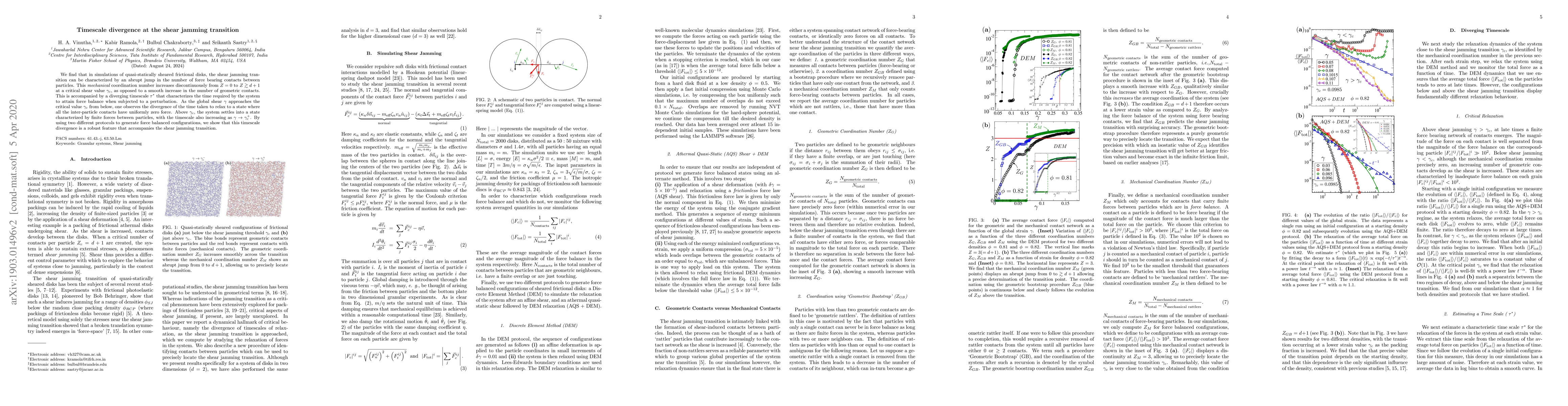 The shear jamming transition in frictional disks exhibits a sudden increase in force-bearing contacts, accompanied by a diverging timescale that characterizes the time required to reach force balance.
