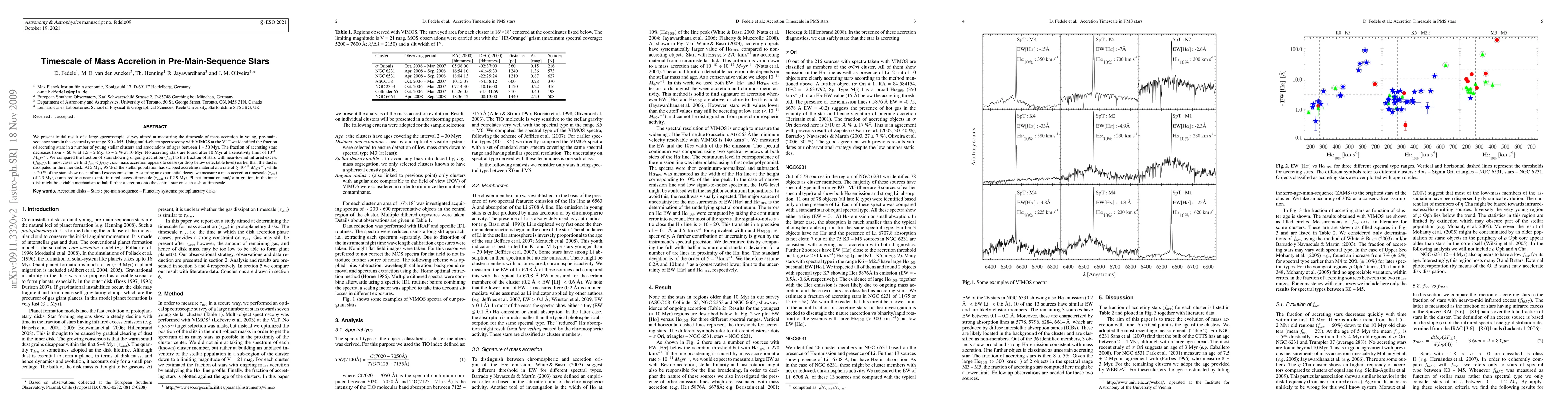 The study utilized multi-object spectroscopy with VIMOS at the VLT to measure the timescale of mass accretion in young pre-main-sequence stars across spectral types K0 - M5 in clusters and associations aged 1 - 50 Myr.