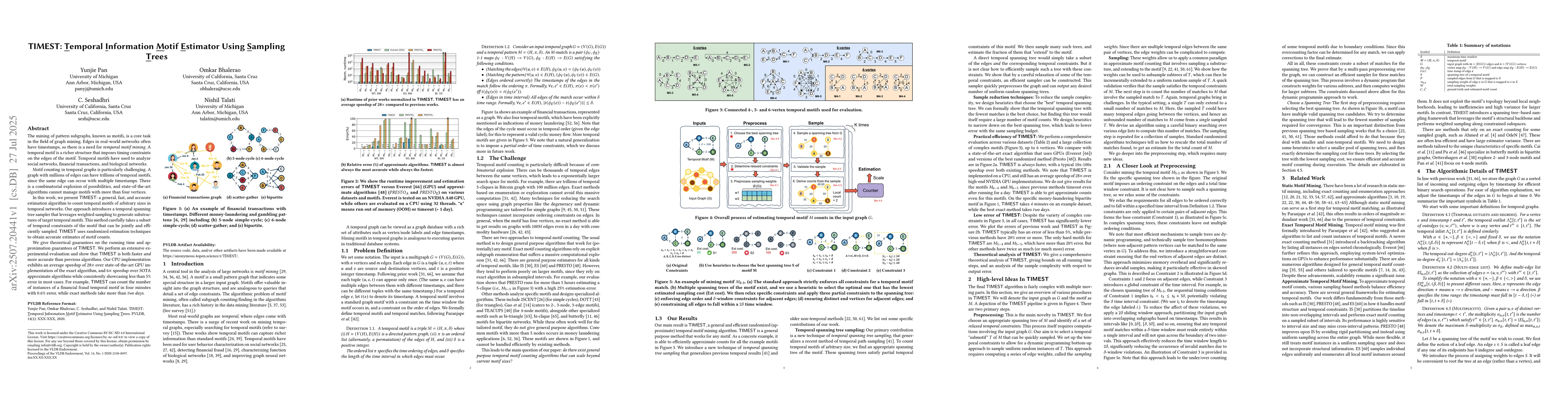 The paper presents TIMEST, an estimation algorithm for counting temporal motifs of arbitrary sizes in temporal networks using sampling trees and weighted sampling to efficiently handle temporal constraints.