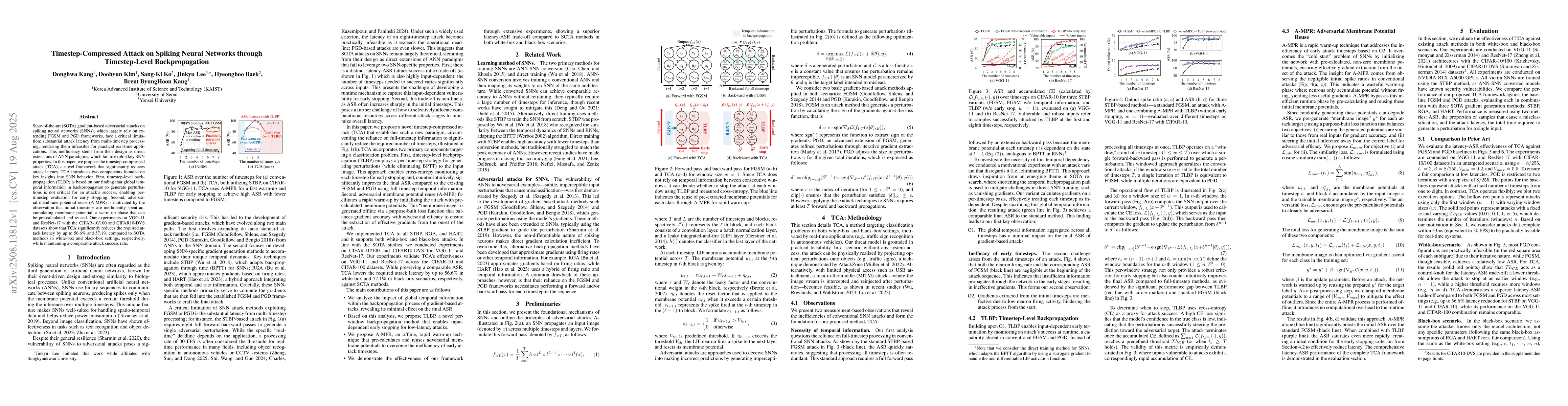 State-of-the-art (SOTA) gradient-based adversarial attacks on spiking neural networks (SNNs), which largely rely on extending FGSM and PGD frameworks, face a critical limitation: substantial attack latency from multi-timestep processing, rendering them infeasible for practical real-time applications. This inefficiency stems from their design as direct extensions of ANN paradigms, which fail to exploit key SNN properties. In this paper, we propose the timestep-compressed attack (TCA), a novel framework that significantly reduces attack latency. TCA introduces two components founded on key insights into SNN behavior. First, timestep-level backpropagation (TLBP) is based on our finding that global temporal information in backpropagation to generate perturbations is not critical for an attack's success, enabling per-timestep evaluation for early stopping. Second, adversarial membrane potential reuse (A-MPR) is motivated by the observation that initial timesteps are inefficiently spent accumulating membrane potential, a warm-up phase that can be pre-calculated and reused. Our experiments on VGG-11 and ResNet-17 with the CIFAR-10/100 and CIFAR10-DVS datasets show that TCA significantly reduces the required attack latency by up to 56.6% and 57.1% compared to SOTA methods in white-box and black-box settings, respectively, while maintaining a comparable attack success rate.