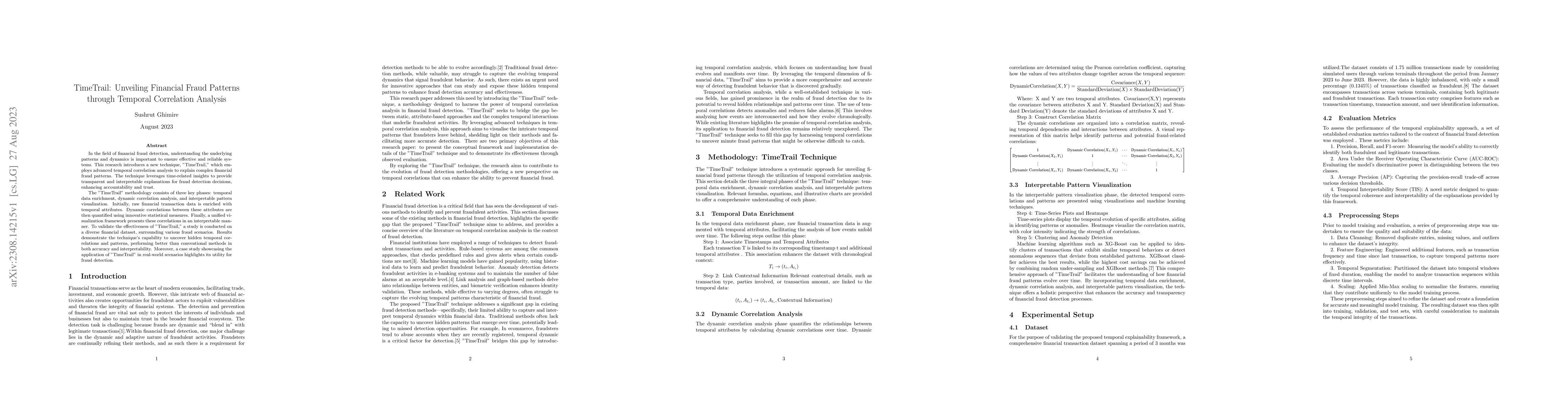 "TimeTrail" introduces a novel temporal correlation analysis technique for financial fraud detection, enhancing interpretability and accountability through enriched data, dynamic correlation quantification, and visual pattern representation. The method outperforms traditional methods in accuracy and transparency, as validated by a comprehensive dataset study and real-world application.