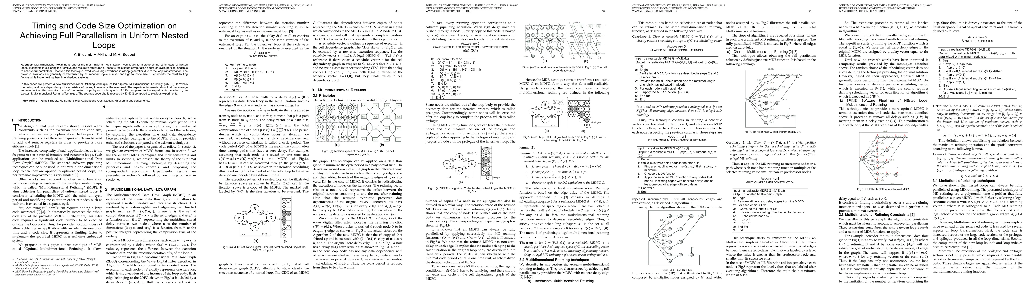 Multidimensional Retiming is one of the most important optimization techniques to improve timing parameters of nested loops. It consists in exploring the iterative and recursive structures of loops to redistribute computation nodes on cycle periods, and thus to achieve full parallelism. However, this technique introduces a large overhead in a loop generation due to the loop transformation. The provided solutions are generally characterized by an important cycle number and a great code size. It represents the most limiting factors while implementing them in embedded systems. In this paper, we present a new Multidimensional Retiming technique, called "Optimal Multidimensional Retiming" (OMDR). It reveals the timing and data dependency characteristics of nodes, to minimize the overhead. The experimental results show that the average improvement on the execution time of the nested loops by our technique is 19.31% compared to the experiments provided by an existent Multidimensional Retiming Technique. The average code size is reduced by 43.53% compared to previous experiments.