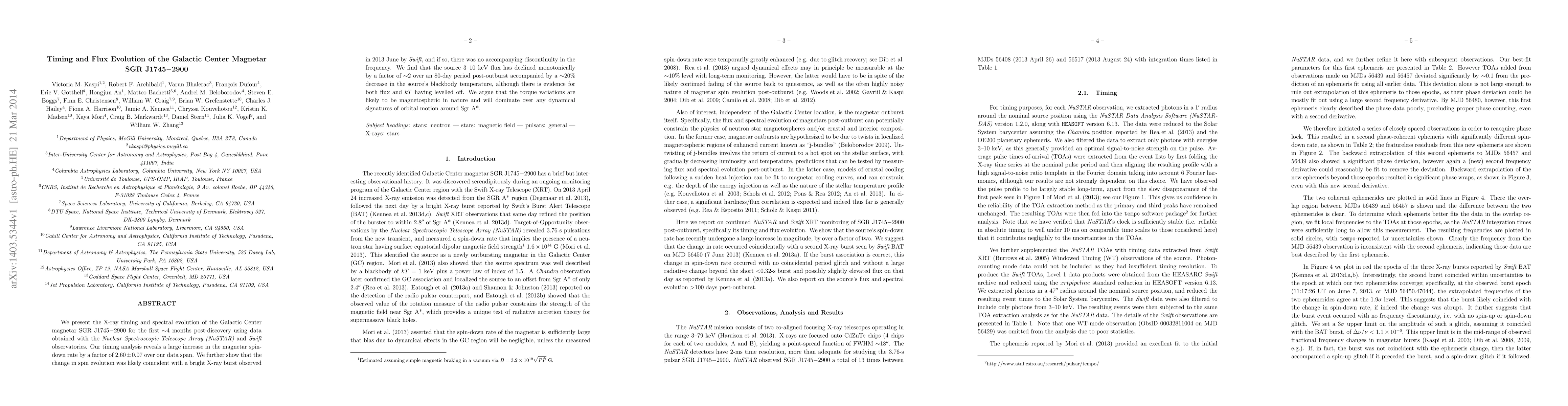 A Galactic Center magnetar, SGR J1745-2900, shows a 2.6-fold increase in spin-down rate over 4 months, with a possible connection to an X-ray burst in 2013. The source's flux has declined by a factor of 2, accompanied by a 20% decrease in temperature.