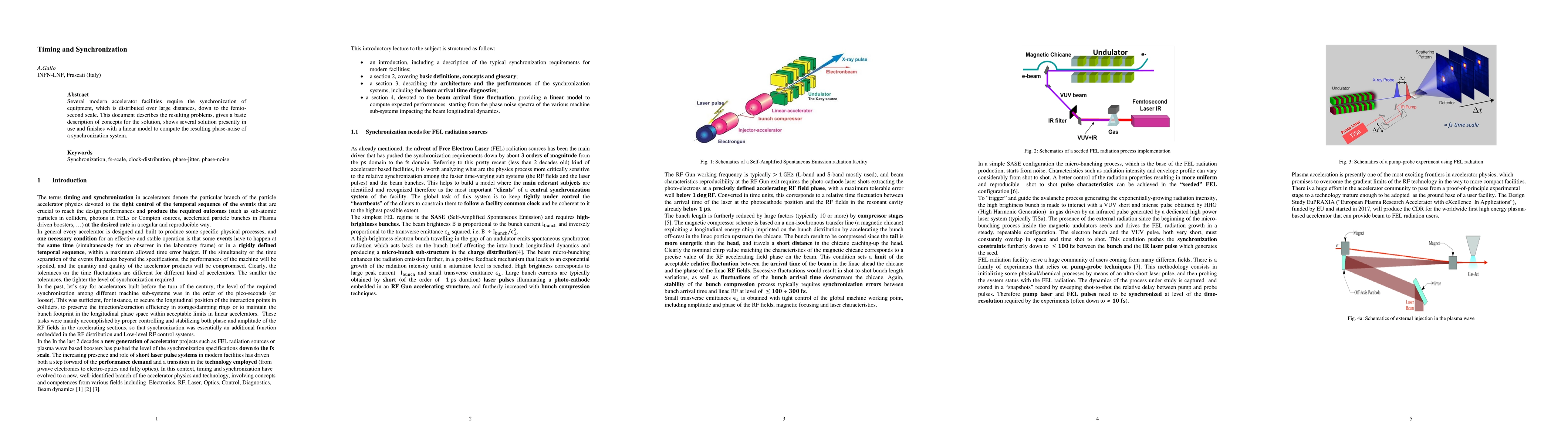 Several modern accelerator facilities require the synchronization of equipment, which is distributed over large distances, down to the femto-second scale. This document describes the resulting problems, gives a basic description of concepts for the solution, shows several solution presently in use and finishes with a linear model to compute the resulting phase-noise of a synchronization system.