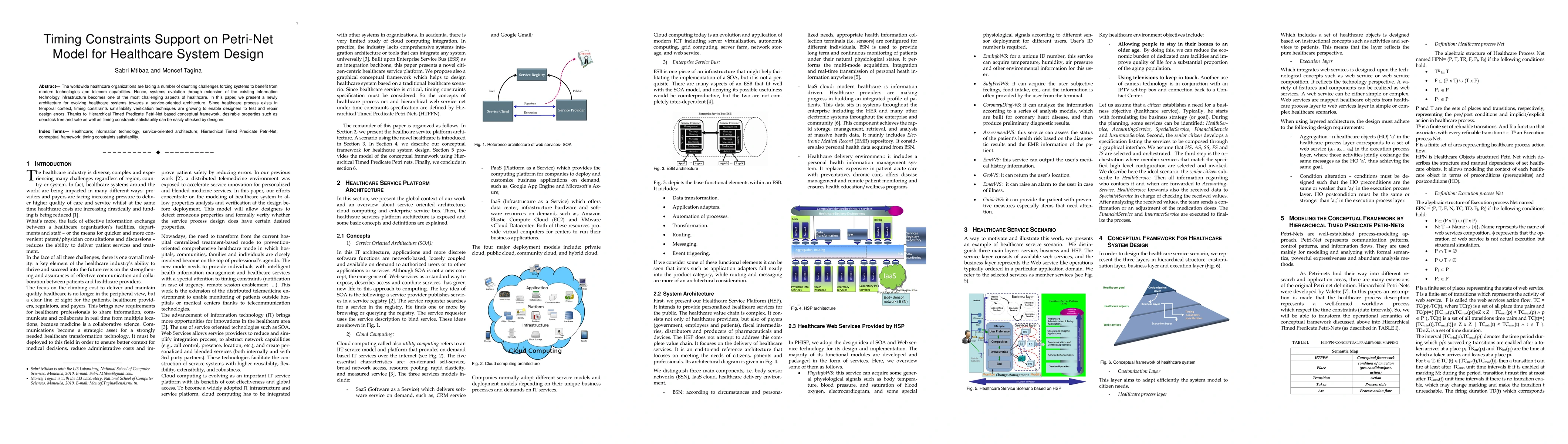 The worldwide healthcare organizations are facing a number of daunting challenges forcing systems to benefit from modern technologies and telecom capabilities. Hence, systems evolution through extension of the existing information technology infrastructure becomes one of the most challenging aspects of healthcare. In this paper, we present a newly architecture for evolving healthcare systems towards a service-oriented architecture. Since healthcare process exists in temporal context, timing constraints satisfiability verification techniques are growing to enable designers to test and repair design errors. Thanks to Hierarchical Timed Predicate Petri-Net based conceptual framework, desirable properties such as deadlock free and safe as well as timing constraints satisfiability can be easily checked by designer.