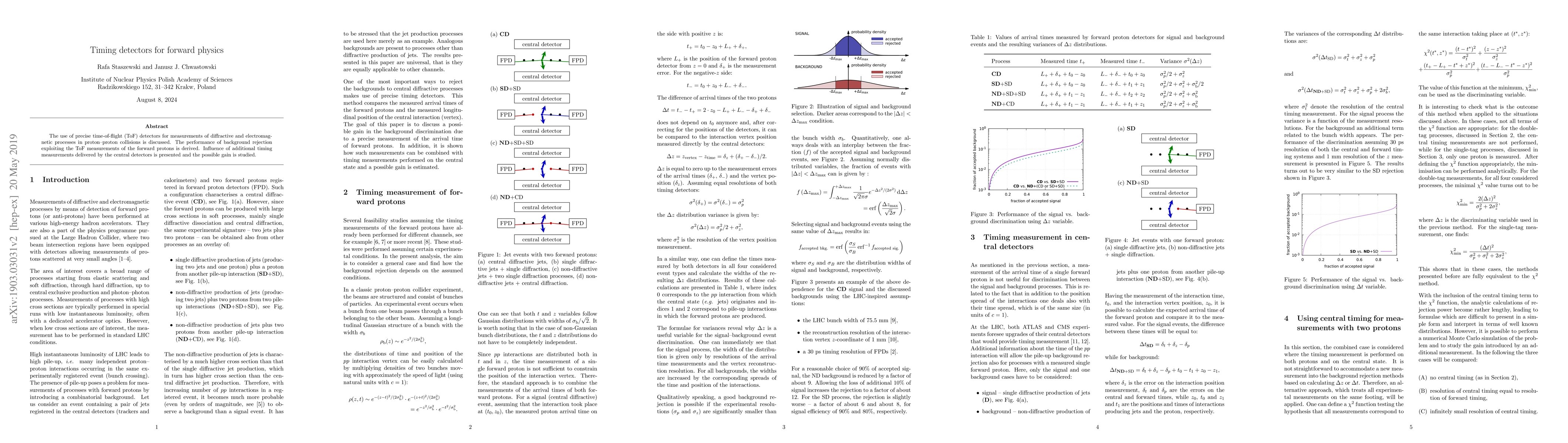 Researchers discuss using precise time-of-flight detectors to improve measurements of diffractive and electromagnetic processes in proton-proton collisions. The study explores the potential gain in background rejection by combining ToF measurements with those from central detectors.