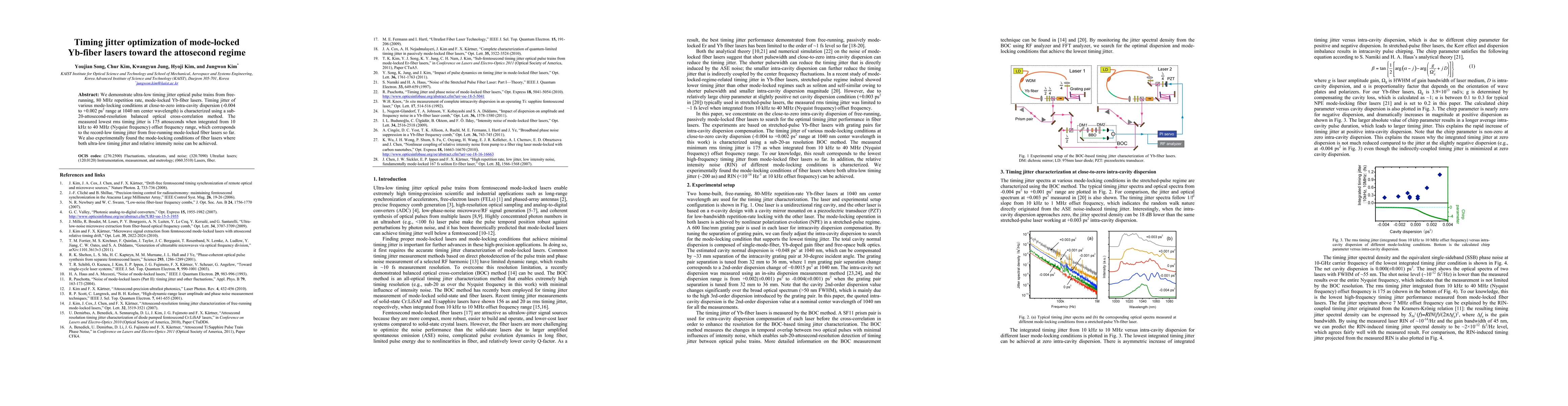 This research demonstrates ultra-low timing jitter in mode-locked Yb-fiber lasers, achieving a record-low 175 attoseconds of rms jitter at 80 MHz repetition rate. The study optimizes mode-locking conditions to minimize jitter and noise, crucial for advancing attosecond pulse generation.