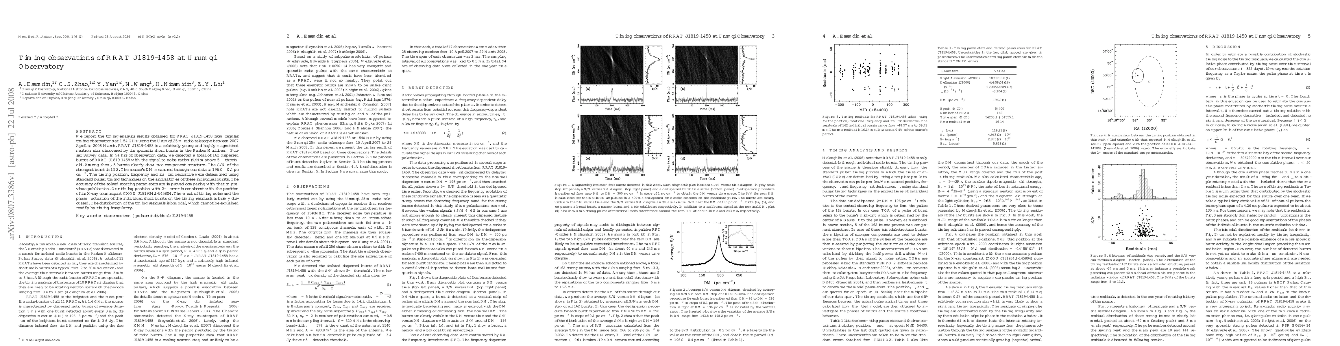 Scientists used radio telescopes to study RRAT J1819-1458, a young and highly magnetized neutron star that emits short bursts, and found 162 dispersed bursts with signal-to-noise ratios above threshold.