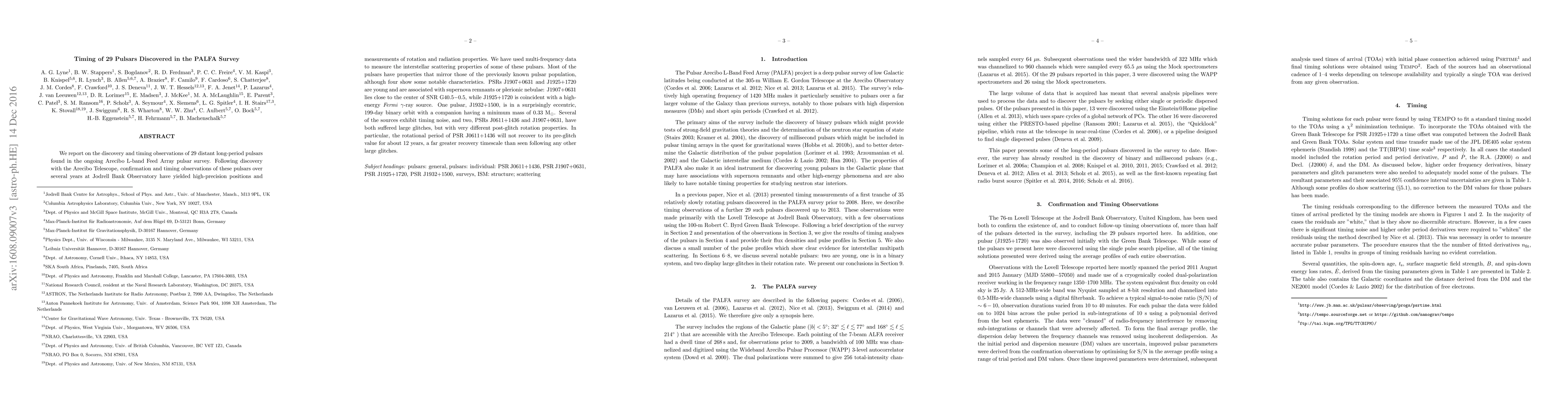 This paper reports the discovery and timing observations of 29 long-period pulsars from the PALFA survey, providing high-precision measurements and revealing four pulsars with unique characteristics, including a pulsar in a rare binary orbit and two experiencing significant glitches.