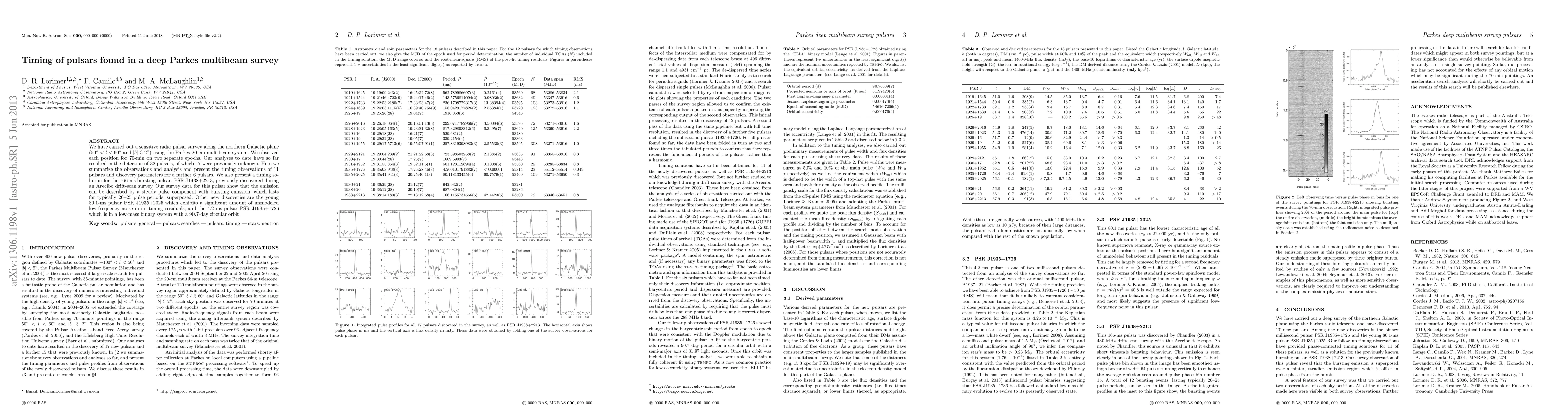 We have carried out a sensitive radio pulsar survey along the northern Galactic plane ($50^{\circ} < l < 60^{\circ}$ and $|b| \lapp 2^{\circ}$) using the Parkes 20-cm multibeam system. We observed each position for 70-min on two separate epochs. Our analyses to date have so far resulted in the detection of 32 pulsars, of which 17 were previously unknown. Here we summarize the observations and analysis and present the timing observations of 11 pulsars and discovery parameters for a further 6 pulsars. We also present a timing solution for the 166-ms bursting pulsar, PSR~J1938+2213, previously discovered during an Arecibo drift-scan survey. Our survey data for this pulsar show that the emission can be described by a steady pulse component with bursting emission, which lasts for typically 20--25 pulse periods, superposed. Other new discoveries are the young 80.1-ms pulsar PSR~J1935+2025 which exhibits a significant amount of unmodeled low-frequency noise in its timing residuals, and the 4.2-ms pulsar PSR~J1935+1726 which is in a low-mass binary system with a 90.7-day circular orbit.