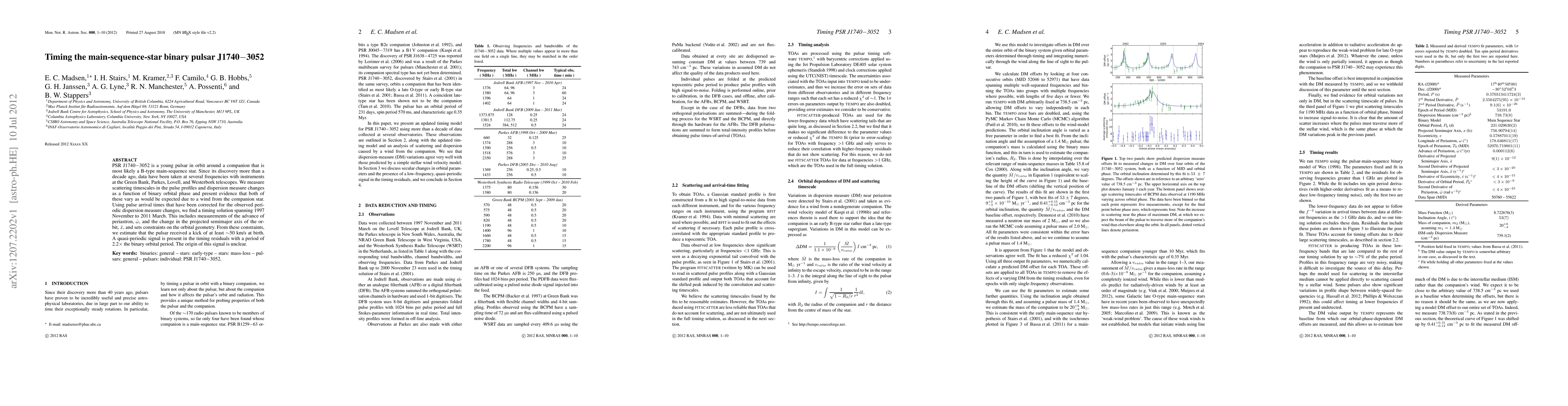 This paper analyzes the timing of the binary pulsar PSR J1740-3052, revealing variations in scattering timescales and dispersion measure due to the companion star's wind. The study provides a timing solution and estimates a pulsar kick of at least ~50 km/s, while noting an unclear quasi-periodic signal in the timing residuals.