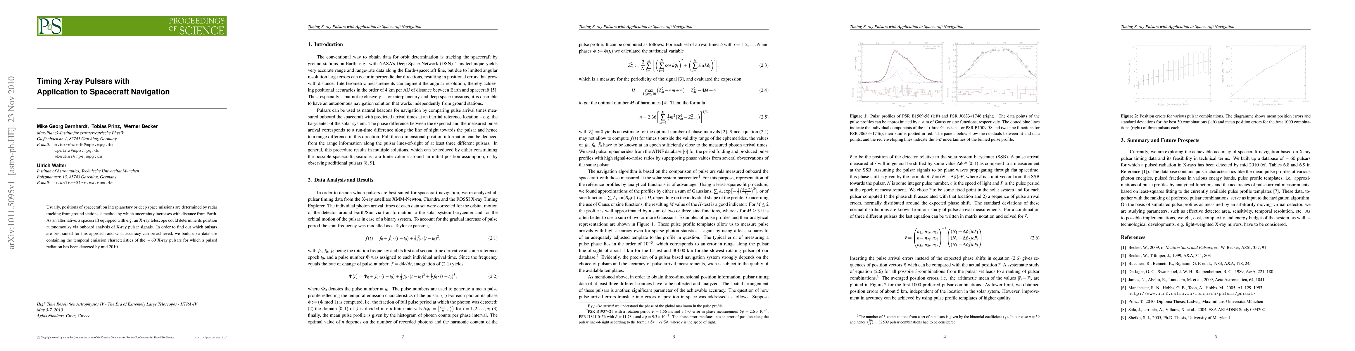 This paper explores using X-ray pulsar signals for spacecraft navigation as an alternative to ground-based radar tracking, building a database of temporal emission characteristics for ~60 detected X-ray pulsars to determine their suitability and potential accuracy for autonomous positioning.