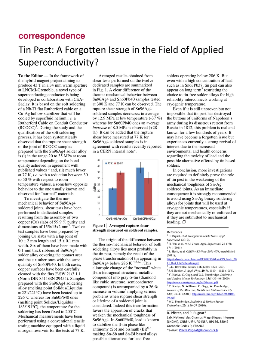The research investigates shear ruptures in Cu samples soldered with Sn96Ag4 and Sn60Pb40 alloys at 300K and 77K, finding a 37% average decrease in shear rupture strength at cold temperatures for lead-free Sn96Ag4 soldering, attributed to tin pest.