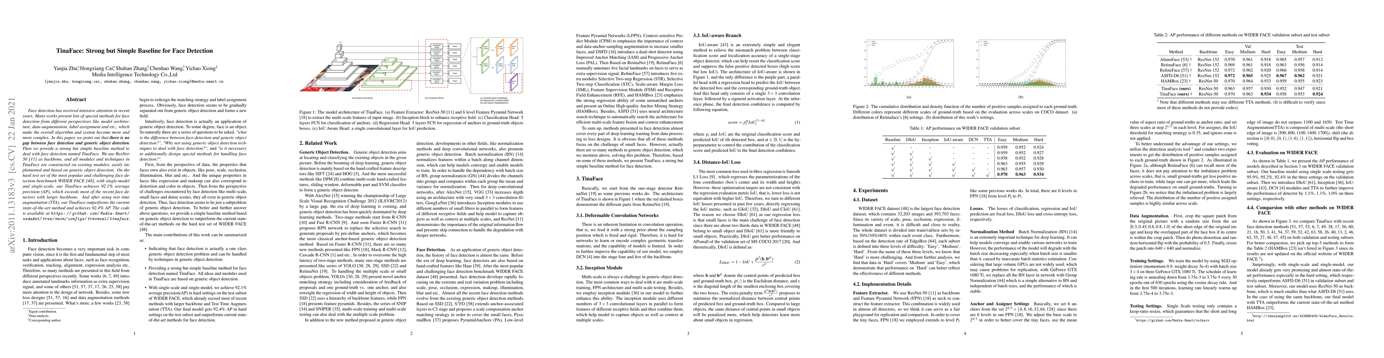 This paper proposes a simple yet strong face detection method called TinaFace, which outperforms recent methods using ResNet-50 as the backbone, achieving 92.1% average precision.