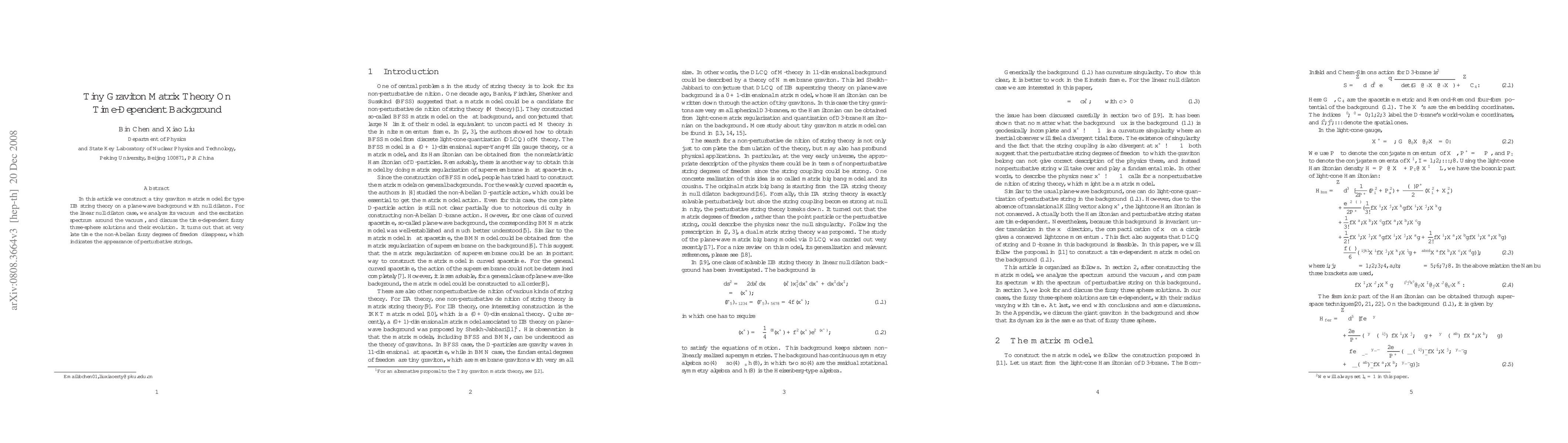 This paper constructs a tiny graviton matrix model for type IIB string theory on a plane-wave background with a null dilaton, analyzing its vacuum and excitation spectrum. It finds that non-Abelian fuzzy degrees of freedom vanish at very late times, indicating the emergence of perturbative strings.