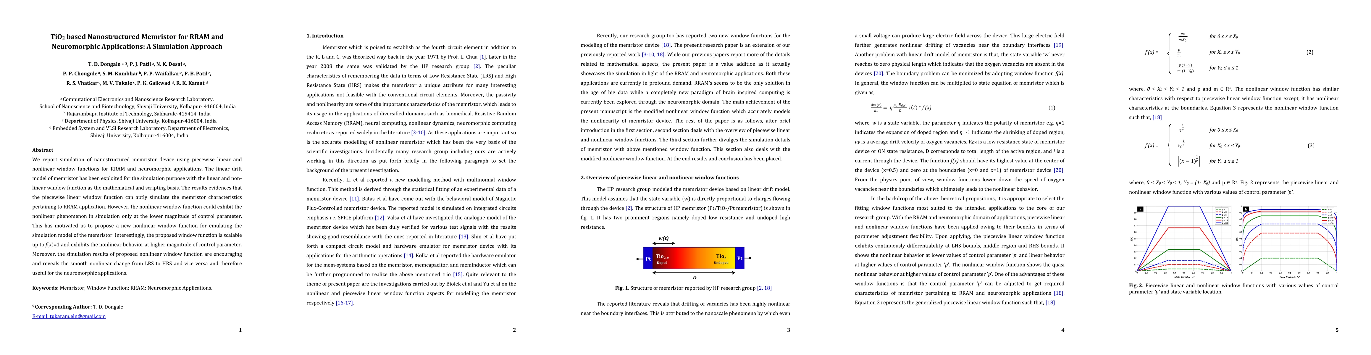 This paper simulates a nanostructured memristor using piecewise linear and nonlinear window functions for RRAM and neuromorphic applications, finding that the nonlinear function can exhibit nonlinear behavior at higher control parameter magnitudes.