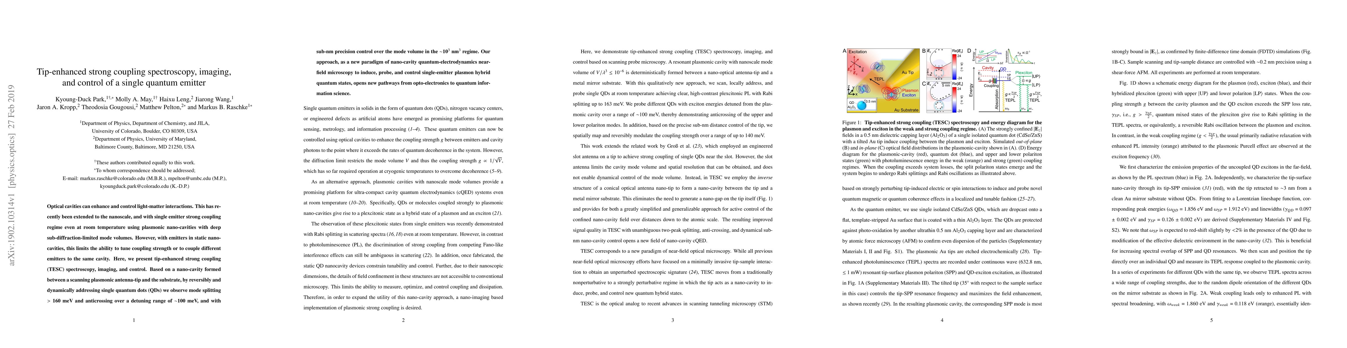 This paper introduces tip-enhanced strong coupling (TESC) for dynamic interaction with single quantum dots using plasmonic nano-cavities, achieving mode splitting and anticrossing over a detuning range, and offering sub-nm precision control. This approach enables new pathways in nano-cavity quantum-electrodynamics and quantum information science.