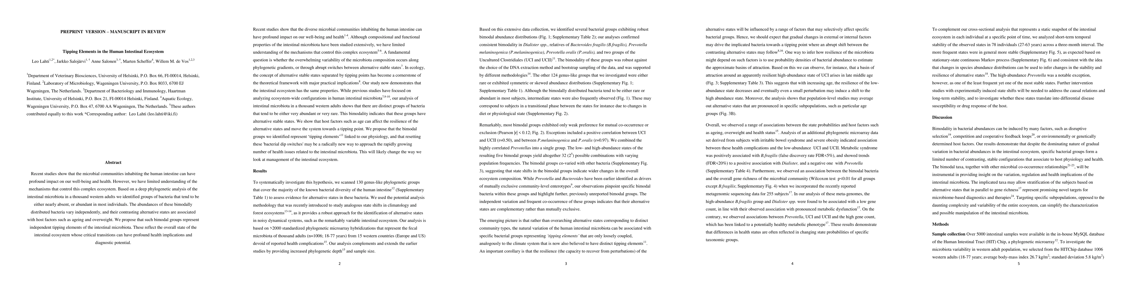This study identifies bimodally distributed bacteria in the human intestinal microbiota as potential tipping elements, which can shift the ecosystem into different states linked to factors like aging and obesity, highlighting their critical role in overall gut health and diagnostic potential.