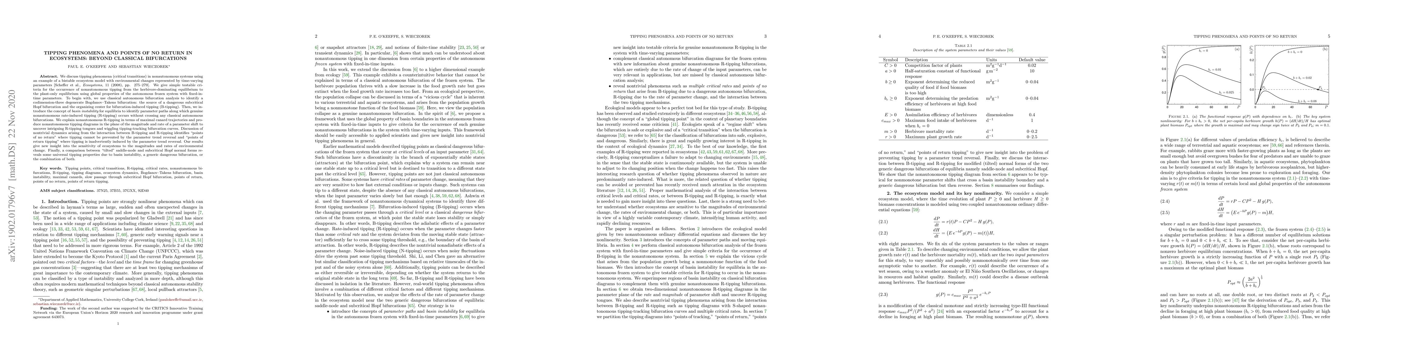 This paper explores tipping phenomena in ecosystems influenced by environmental changes, identifying criteria for nonautonomous tipping using a bistable model. It introduces basin instability and maximal canard trajectories to explain rate-induced tipping without classical bifurcations, revealing "points of no return" and "points of return tipping."