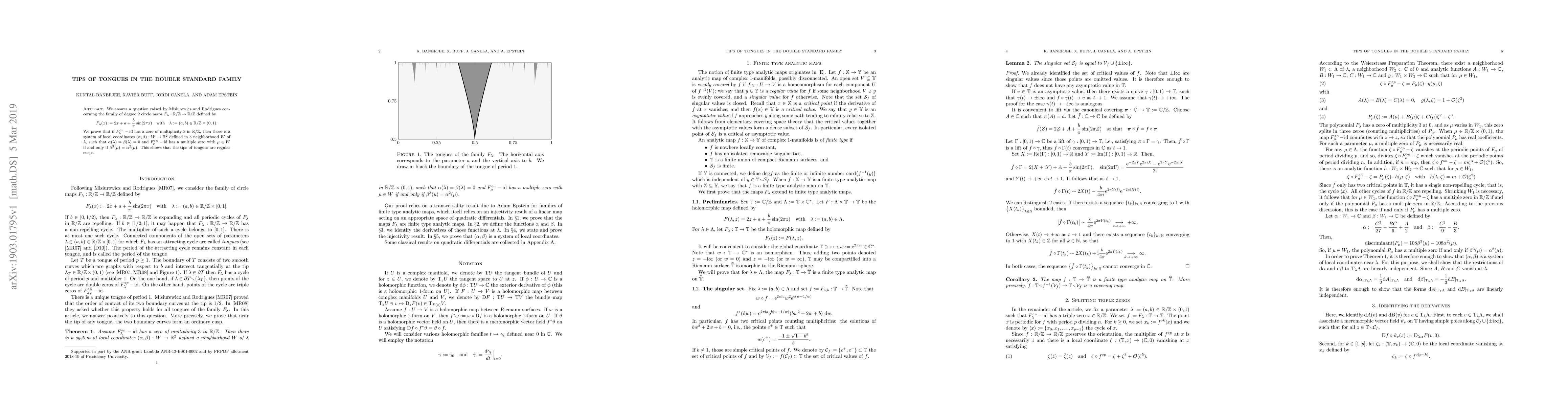 This paper addresses the double standard family of degree 2 circle maps, proving that the presence of a zero of multiplicity 3 in the map's iterate leads to a system of local coordinates where the tips of tongues correspond to regular cusps, characterized by the condition $\beta^3(\mu) = \alpha^2(\mu)$.
