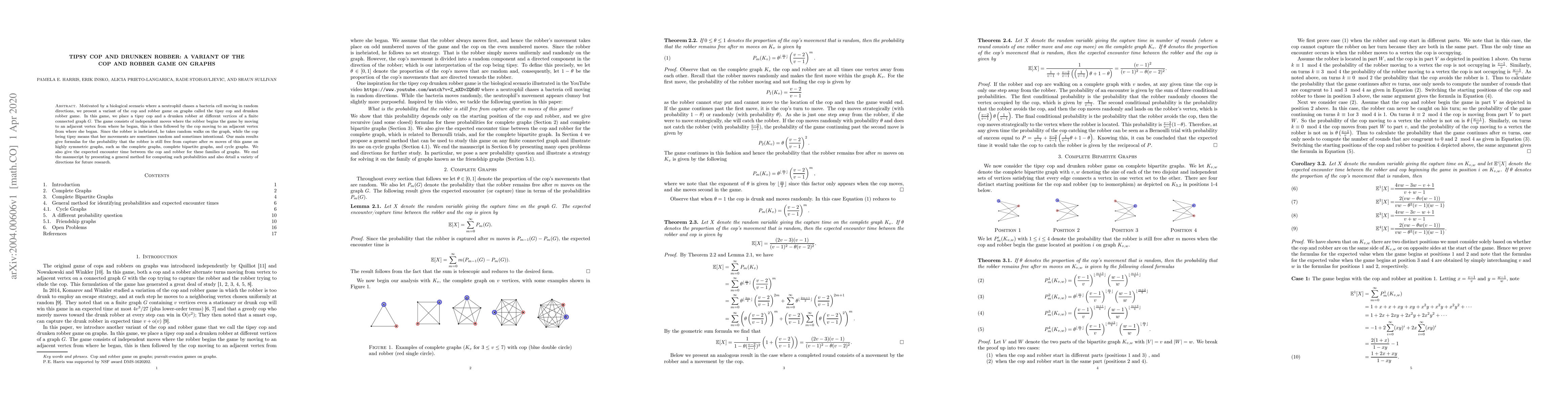 Motivated by a biological scenario illustrated in the YouTube video \url{ https://www.youtube.com/watch?v=Z_mXDvZQ6dU} where a neutrophil chases a bacteria cell moving in random directions, we present a variant of the cop and robber game on graphs called the tipsy cop and drunken robber game. In this game, we place a tipsy cop and a drunken robber at different vertices of a finite connected graph $G$. The game consists of independent moves where the robber begins the game by moving to an adjacent vertex from where he began, this is then followed by the cop moving to an adjacent vertex from where she began. Since the robber is inebriated, he takes random walks on the graph, while the cop being tipsy means that her movements are sometimes random and sometimes intentional. Our main results give formulas for the probability that the robber is still free from capture after $m$ moves of this game on highly symmetric graphs, such as the complete graphs, complete bipartite graphs, and cycle graphs. We also give the expected encounter time between the cop and robber for these families of graphs. We end the manuscript by presenting a general method for computing such probabilities and also detail a variety of directions for future research.