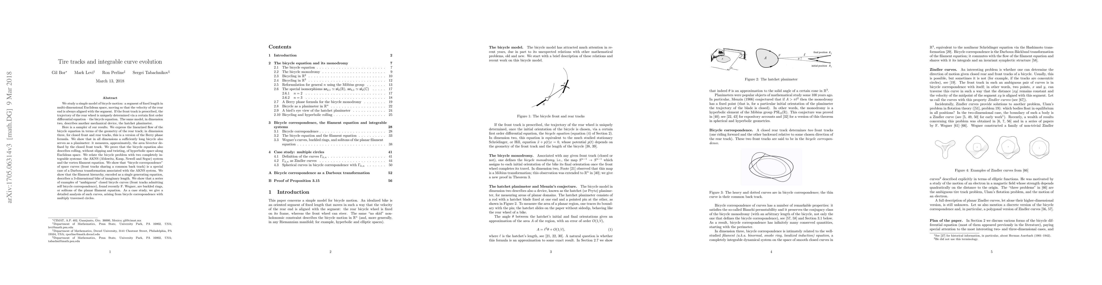 This paper explores the bicycle motion model as a segment of fixed length in Euclidean space, finding its trajectory via the bicycle equation. Key findings include expressing the linearized flow in terms of rear track geometry, showing a long bicycle approximates area measurement, and linking the bicycle equation to hyperbolic space rolling. The study also connects the bicycle problem to integrable systems like AKNS and vortex filament equation, demonstrating 'bicycle correspondence' as a Darboux transformation. Ambiguous closed bicycle curves are identified as buckled rings or solitons of the planar filament equation.